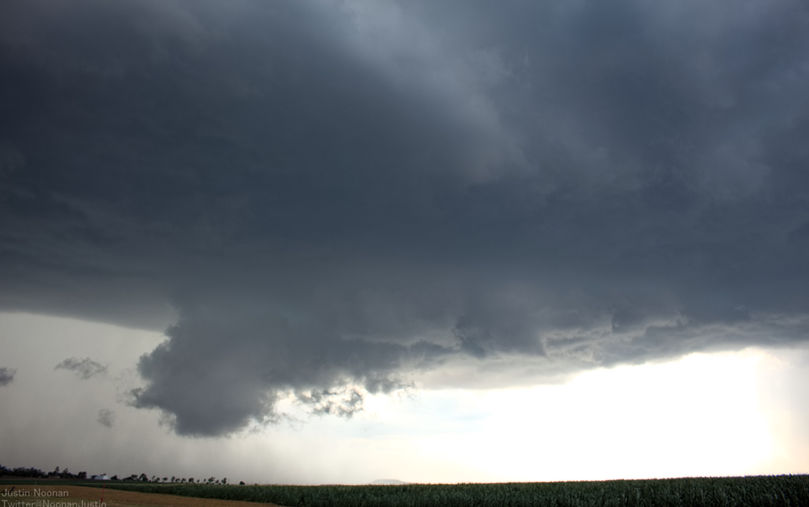 This storm took on classic supercell characteristics with an impressive wall cloud developing and a strong rear flank downdraft (RFD). We encountered anvil hail around the 3-4cm mark, and were not surprised to find out later that hail the size of cricket balls fell in the town of Oakey.